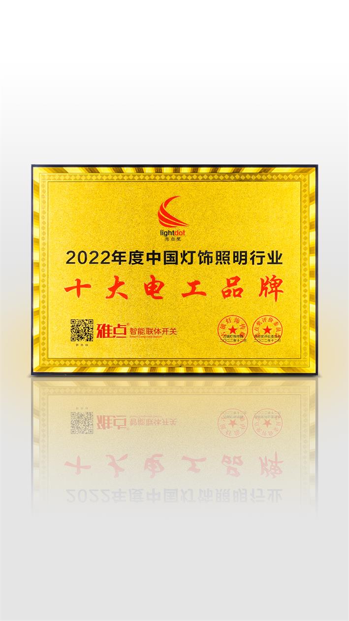 “亮點獎”自薦申報企業有725家,最終進入候選名單的企業共計353家。雅點憑實力脫穎而出,獲得“2022中國燈飾照明行業年度營銷人”以及“2022中國燈飾照明行業十大電工品牌”榮譽。